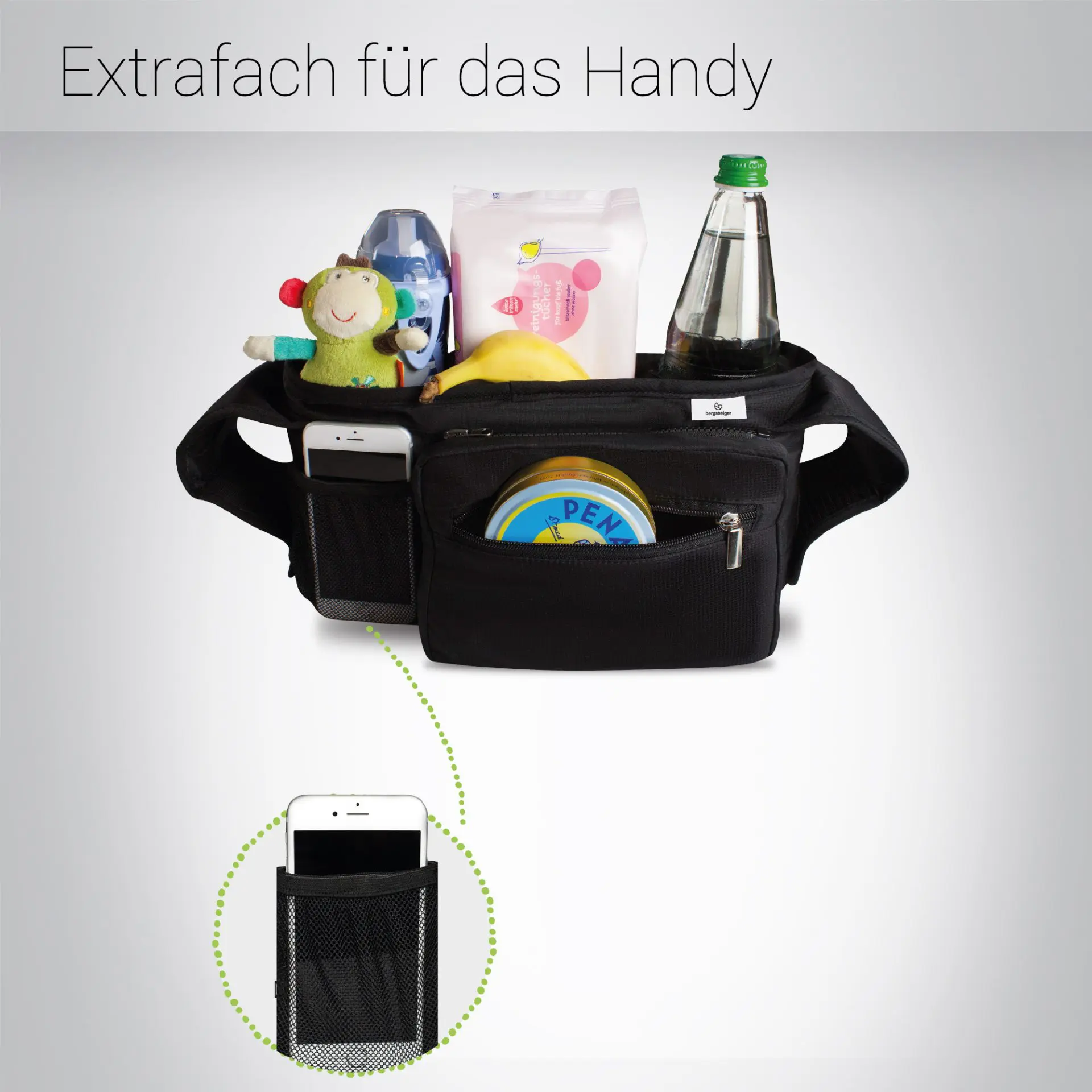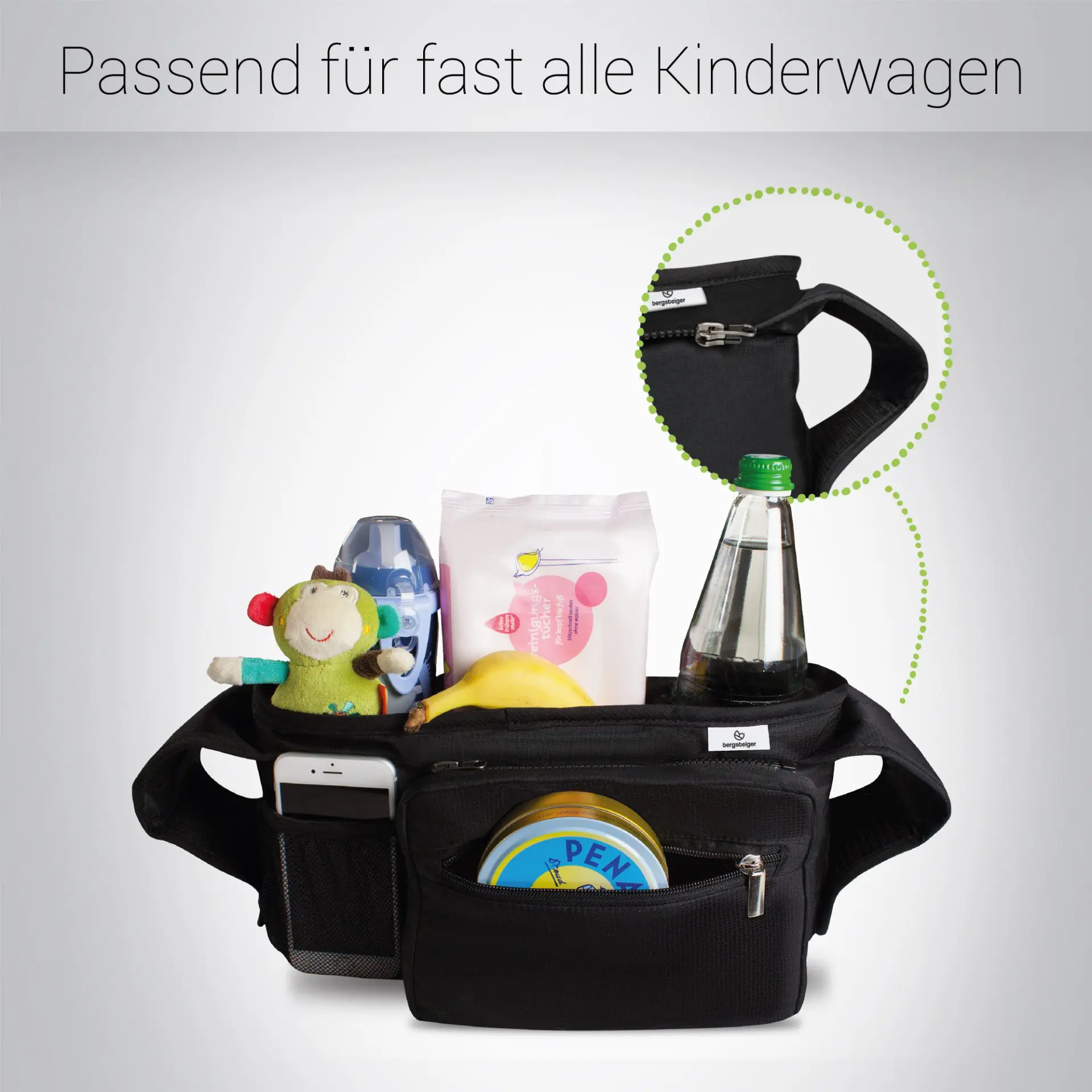 Der Getränkehalter Bergsteiger Organizer Plus ist Dein praktischer Begleiter für den Kinderwagen, auf den Du nicht verzichten kannst.