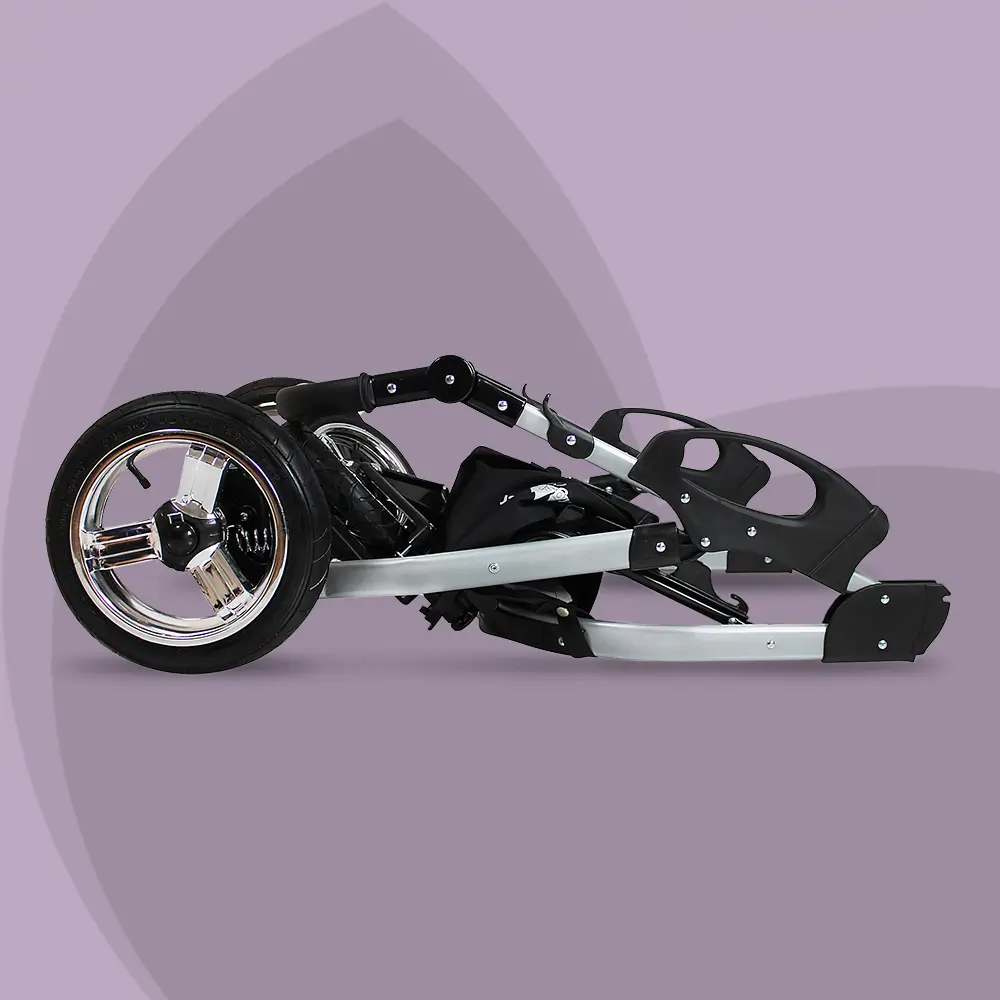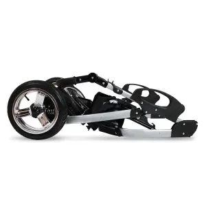Der Kinderwagen lässt sich in Sekundenschnelle zusammenklappen. Das komplette Gestell hat anschließend lediglich eine Größe von 95 x 58 x 30 cm und passt somit auch in den Kofferraum eines Kleinwagens.
