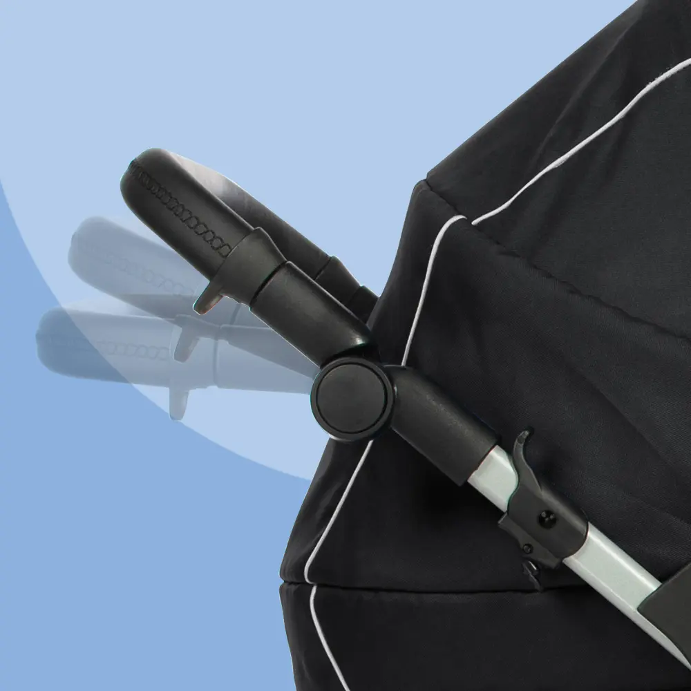 Der Schiebegriff lässt sich variabel auf die Körpergröße des Fahrers einstellen. In Kombination mit den Schwenkrädern und der gefederten Radaufhängung ist so ein komfortables Schieben garantiert.