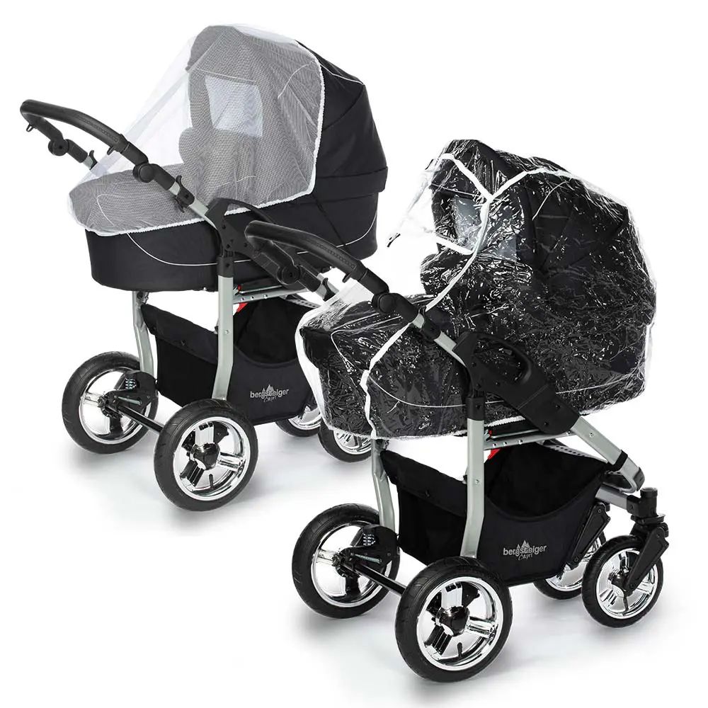 Das beiliegende Regencape schützt Dein Kind und den Kinderwagen vor Wind und Nässe. Im Sommer kann mit wenigen Handgriffen ein Moskitonetz über den Kinderwagen gezogen werden – Insekten haben somit keine Chance.